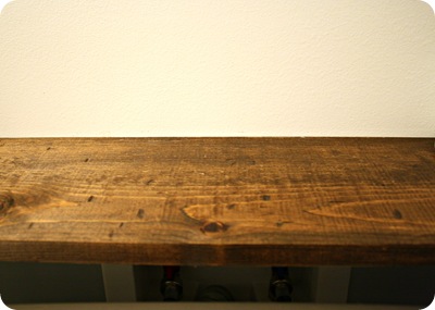 Then I just cut down and stained a piece of wood (about six inches wide) that would lay on the top. I used my nail gun to nail it down into the supports: